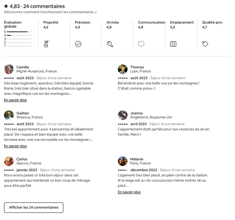 Avis Airbnb : 4,8